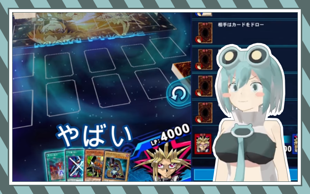バーチャルげろぼデュエリスト・河鹿ゆう。 彼女は、一番好きなものとして遊戯王を上げており、動画中ではスマホアプリ「デュエルリンクス」を実況プレイしていますが、この実況プレイ、思わぬ出来事が発生します。 さて、この実況中に起こったこととは、なんだったでしょうか?